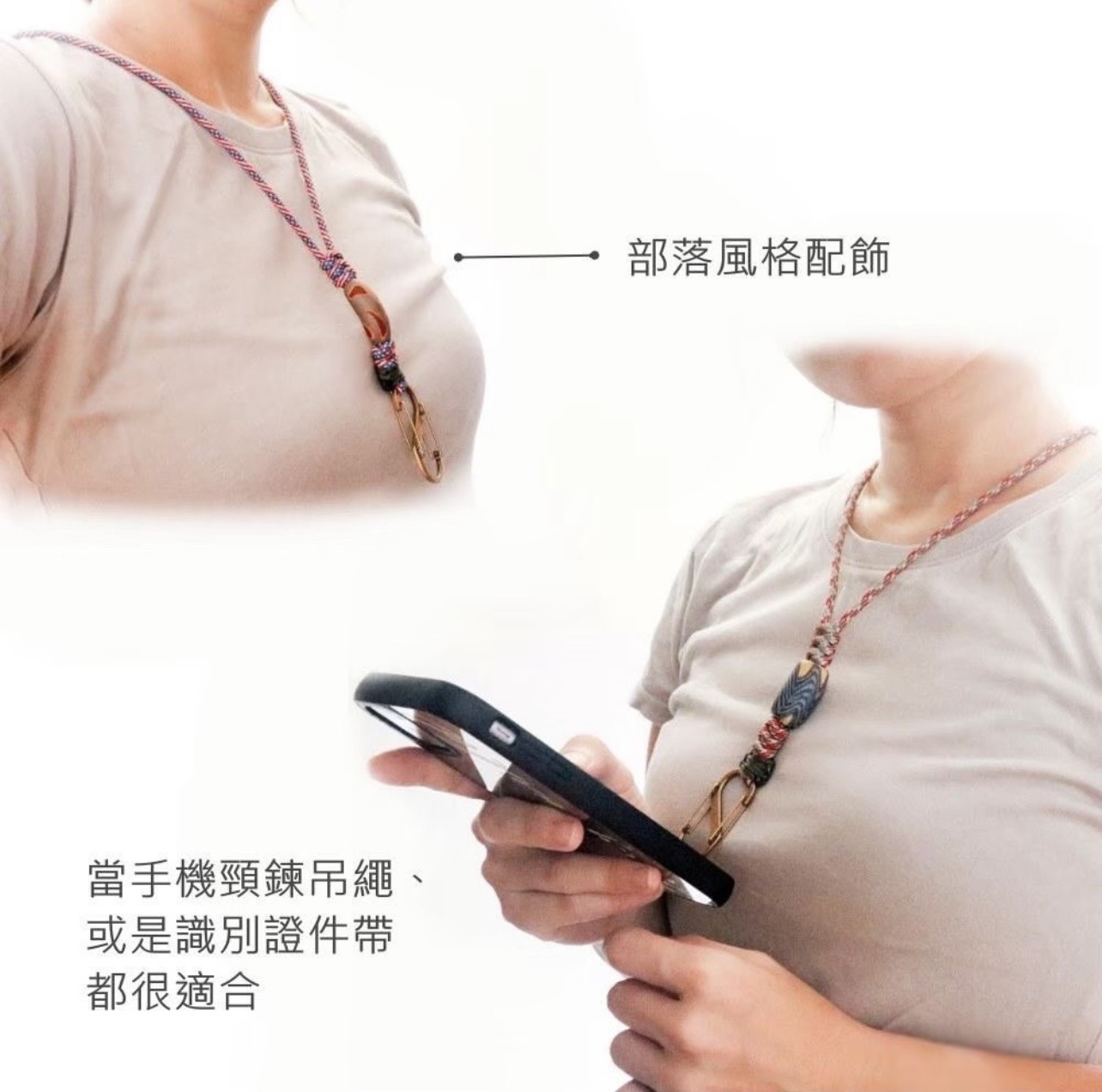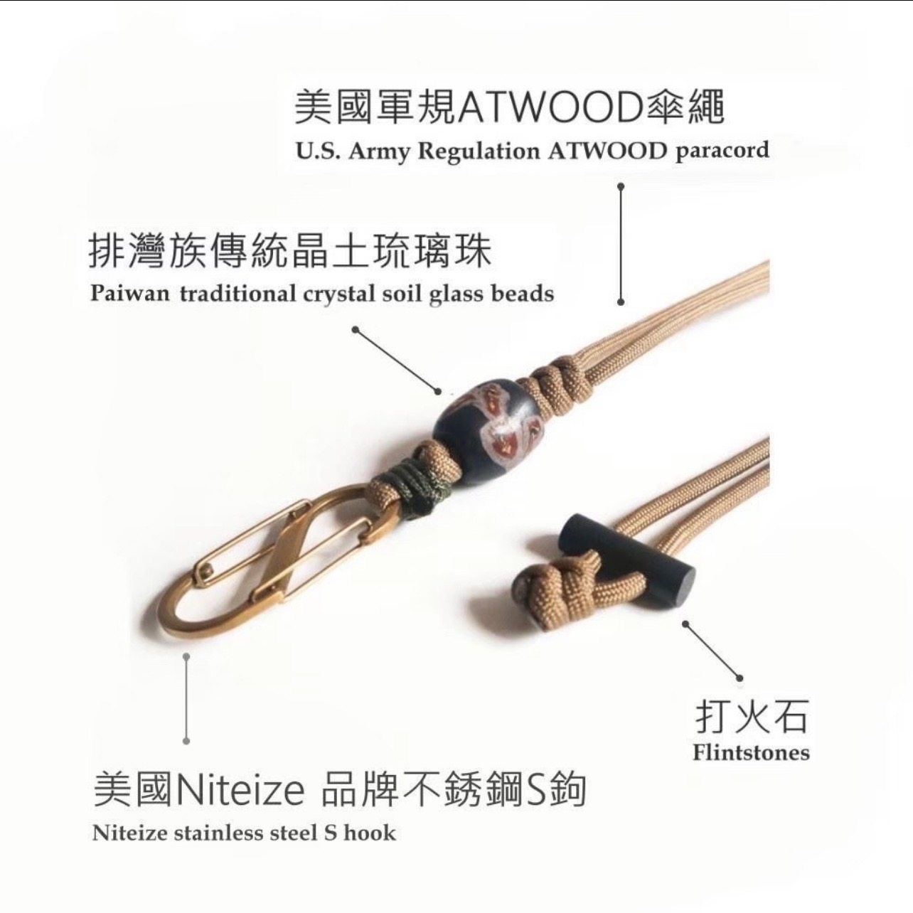 以耐用傘繩與琉璃珠編織而成,兼具實用與造型感。可掛手機、證件或小物,展現文化與現代生活的巧妙融合,適合日常使用與文化活動。